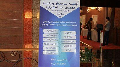 همایش شهریور 1393 پرسش و پاسخ تحصیلی با حضور نمایندگان دانشگاه های استرالیا در تاریخ ۱۷ شهریور ۱۳۹۳در هتل همای تهران به میزبانی موسسه راهیان آبی دانش برگزار شد.